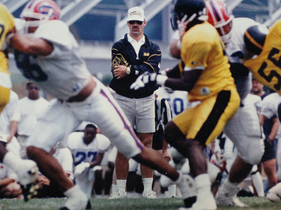 Pittsburgh Steelers 球队教练在球场上进行指导