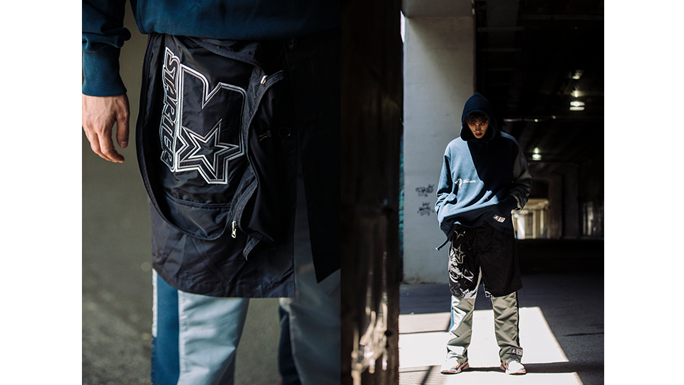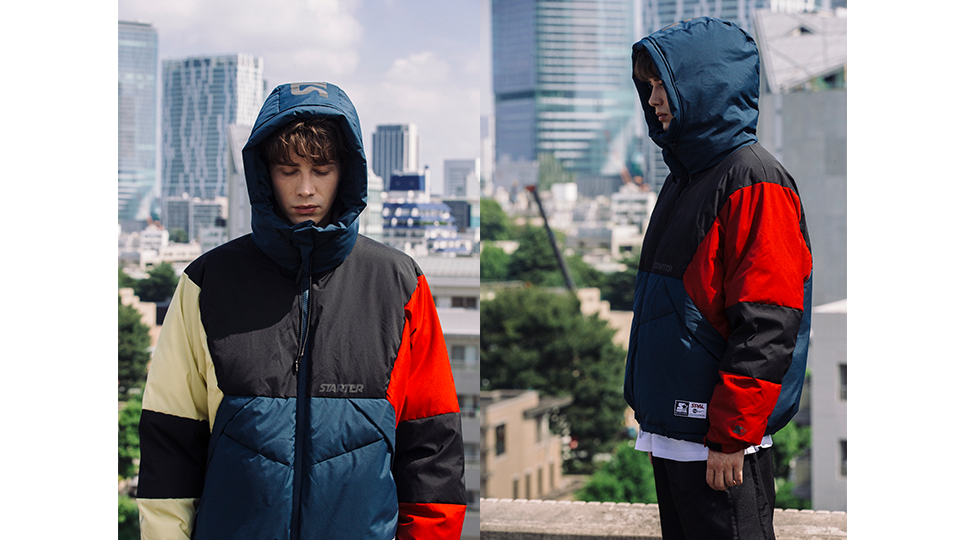 此次联乘采用“解构”、“对撞”的设计手法,将 POLIQUANT 品牌的设计理念与 STARTER 的经典品牌元素以全新的方式进行重塑设计,同时利用不同质地的面料进行拼接,创造出多层次、丰富的视觉效果,呈现两个品牌间工艺与特质的融合。