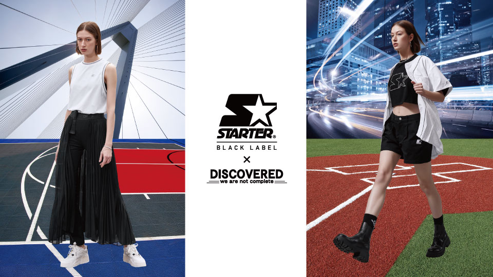 此次联名系列采用经典百搭的黑、白两色配色,在STARTER经典版型上融入拼接、欧根纱、网眼和贴布秀等设计元素,打造了包含T恤、背心、长裙等夏日必备潮流单品,并整体使用STARTER大字体LOGO的设计,增加了单品的街头识别度。其中T恤、背心和紧身长裤运用棉+氨纶的面料,保障了女性内搭和日常穿搭的透气及舒适度;传统的棒球外套融入了女性化设计,将柔软亮光的色丁面料和轻透的欧根纱面料进行设计拼接,酷感十足;运动收脚裤使用了轻薄的尼龙起皱平纹布,面料的轻微起皱效果形成独特的复古外观效果。 每一件单品都在在细节中彰显了联名产品的品质与独特性,传达了“融合”和“高街运动”的理念。通过DISCOVERED不被条框限制的设计和剪裁,表达STARTER“LOOK FOR THE STAR”,鼓励年轻人不断挑战自己,打破条框,创新玩法的品牌精神。