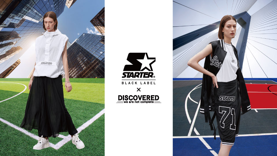 DISCOVERED是由日本设计师木村多津也和吉田早苗所创立,两位设计师均对服装的材料和剪裁有超强的驾驭能力,并且通过解构重组和层次搭配位品牌塑造独树一帜的风格。本次STARTER BLACK LABEL x DISCOVERED联乘系列以“MIX UP”和 “HIGH SPORTS”为主题,旨在以“Opposition Mix Up”的方式将各自的经典元素做结合,并且将STARTER的运动元素与女性时装的搭配手法重新解构重组,用细腻的手法和独立的审美呈现出新颖独特的丰富单品。